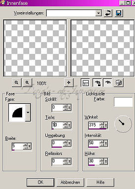 12. Auswahl bestehen lassen 13. Effekte/3D-Effekte/Innenfase/mit diesen Einstellungen