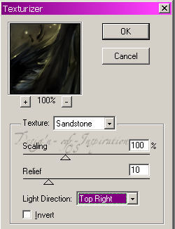Zauberstab hinein (selbe Einstellung wie eben) Effekt Texture Texturizer mit folgenden Einstellungen: